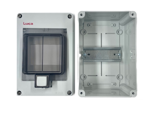 Moduulikotelo valmistettu vaaleanharmaasta itsesammuvasta termomuovista.