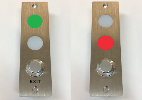 Pinta-asenteinen merkkivaloyksikkö kahdella ledillä ja poistumispainikkeella.