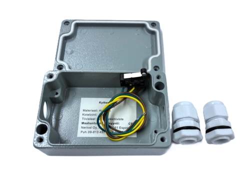 Alumiinistä valettu kestävä liitäntärasia vaativiin olosuhteisiin muovisilla vedonpoisto holkkitiivisteillä ja kansikytkimellä.