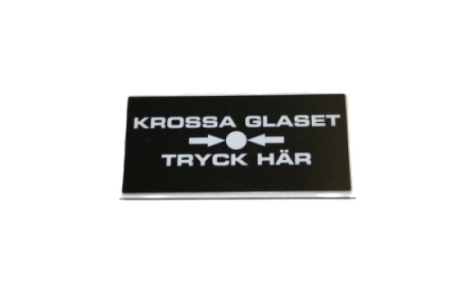 HL5030MGG Varalasi hätälaukaisupainikeelle HL5030 sarjaan tekstillä "Krossa Glaset"