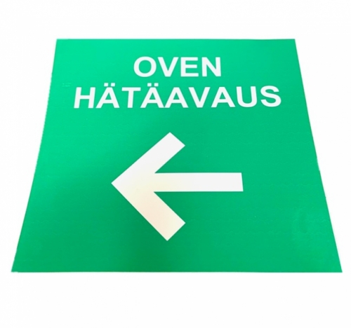 Tarra "oven hätäavaus" vihreä/ valkoinen 150x 150 mm nuoli vasen