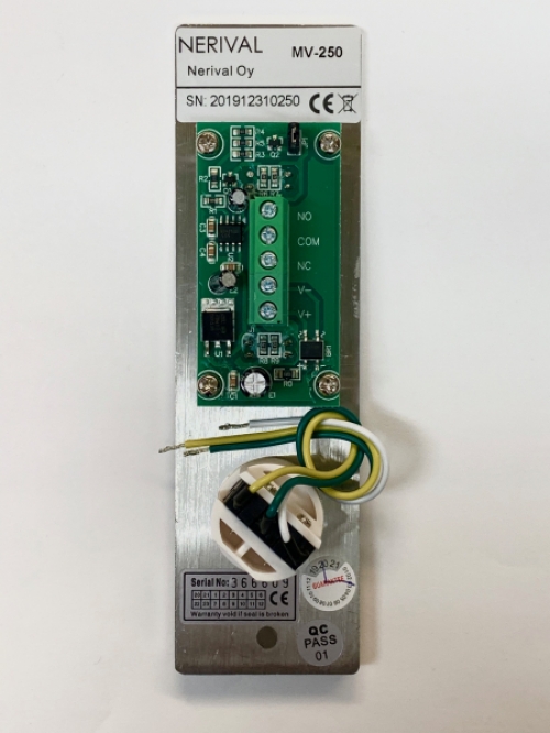 Vihreä: NC ja COM kytkeytynyt, Punainen: NO ja COM kytkeytynyt