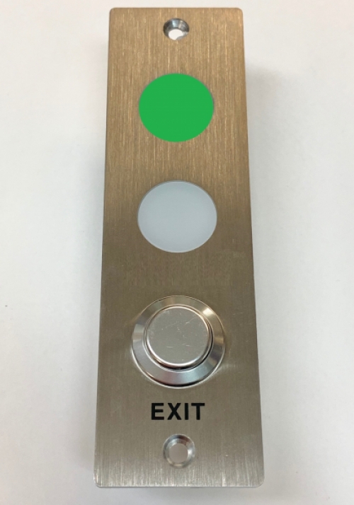 Uppoasenteinen merkkivaloyksikkö kahdella ledillä ja poistumispainikkeella.